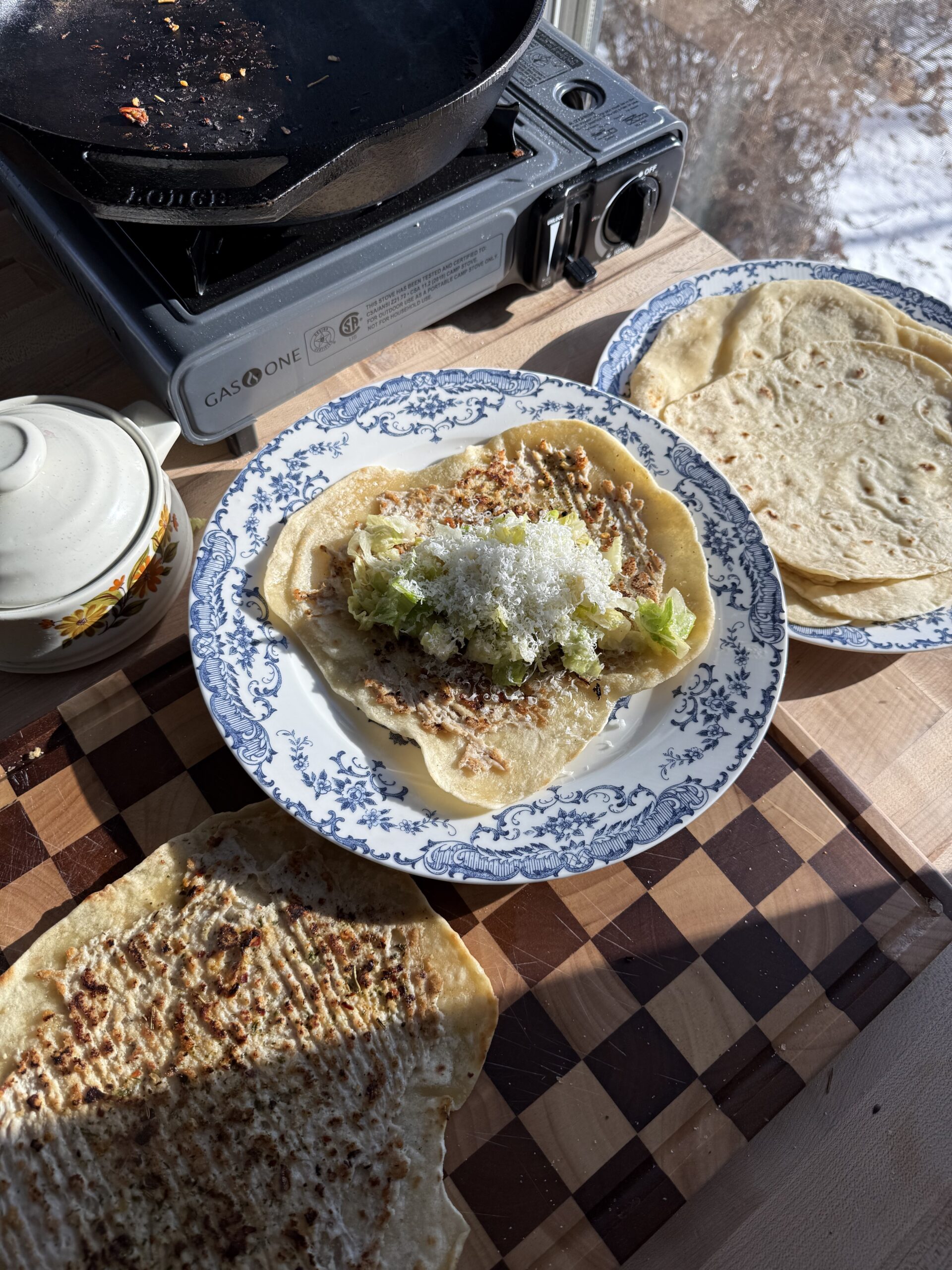 - Top your chicken smash tortillas with the caesar salad and garnish with extra freshly grated parmesan.