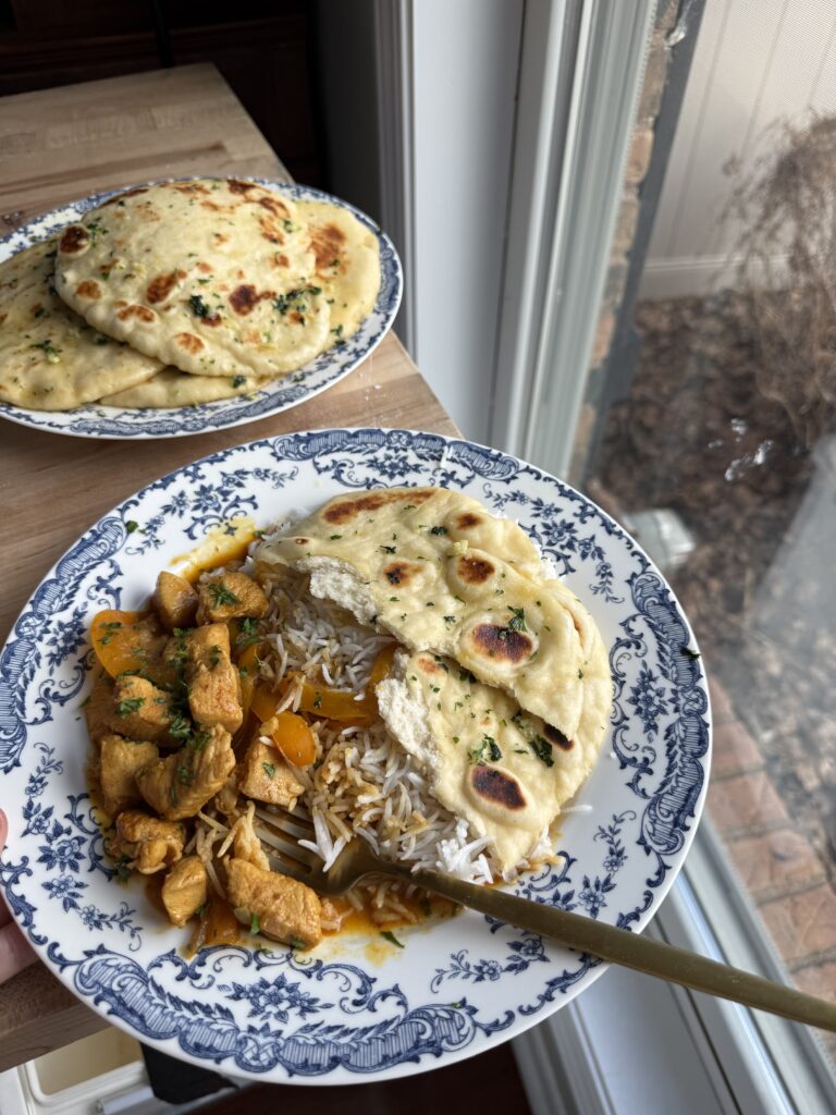 - Meanwhile, cut your chicken. In a small bowl, toss the chicken with the curry powder, garlic powder, onion powder, and salt until evenly coated.